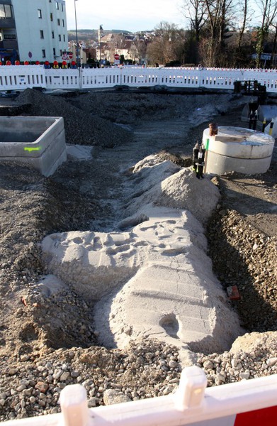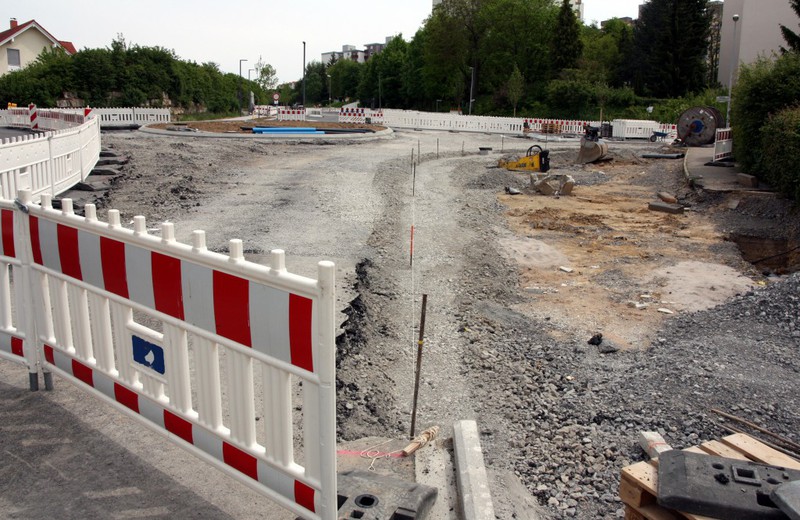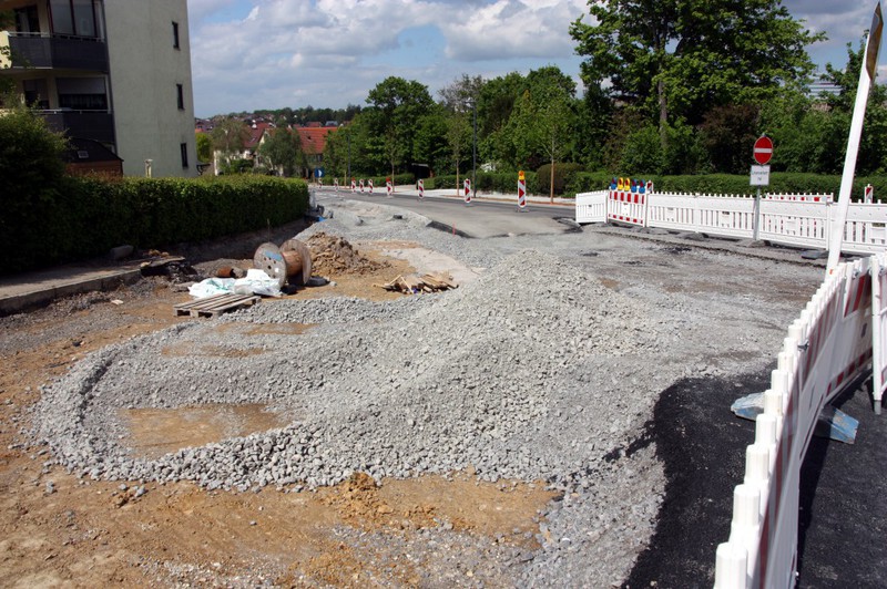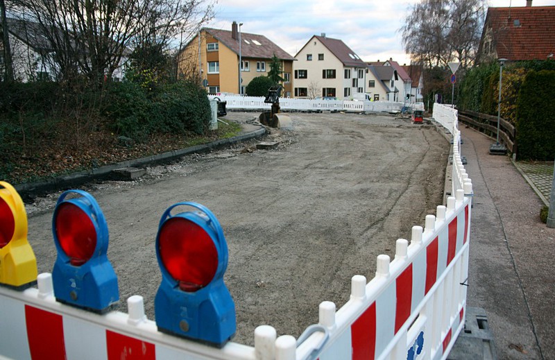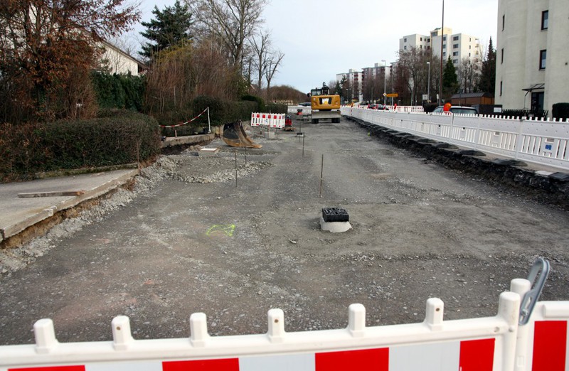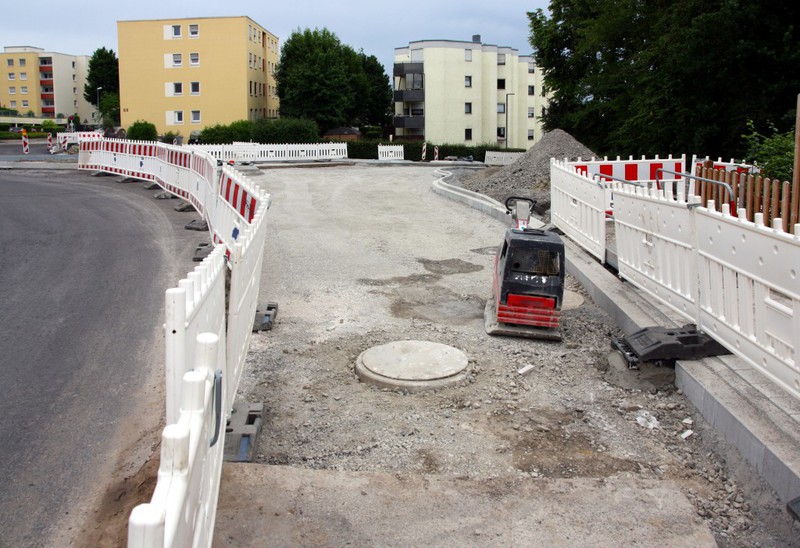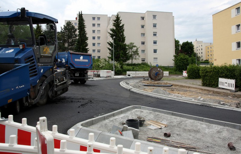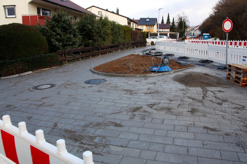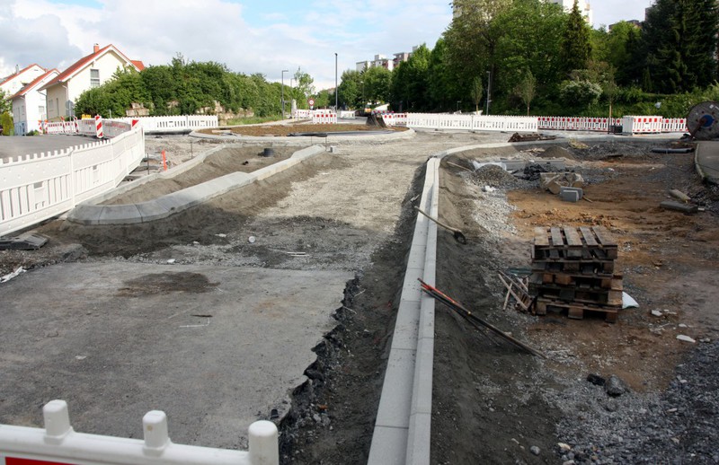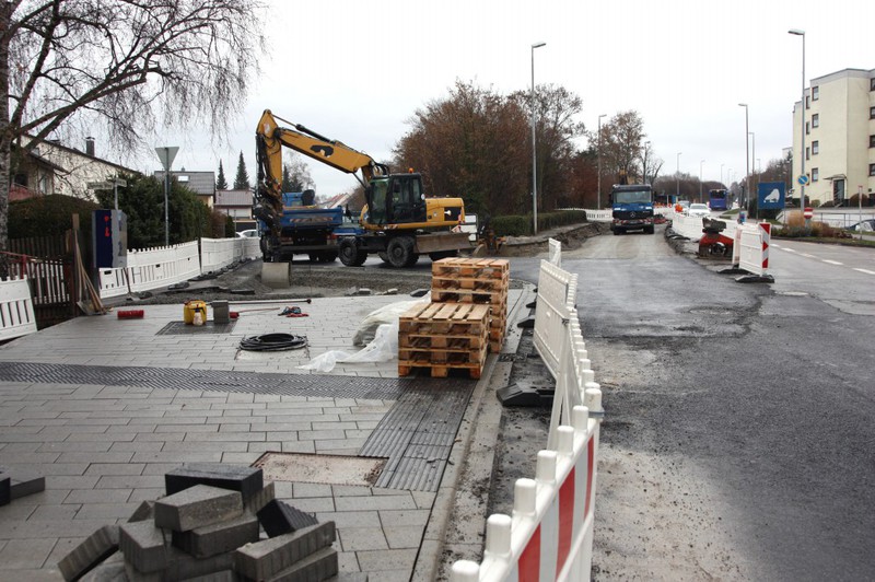 Im Bereich des künftigen neuen Kreisels sind die bestehenden Baugräben vollständig verschlossen worden. In Richtung der Hermann-Essig-Straße wurde eine neue Wasserleitung