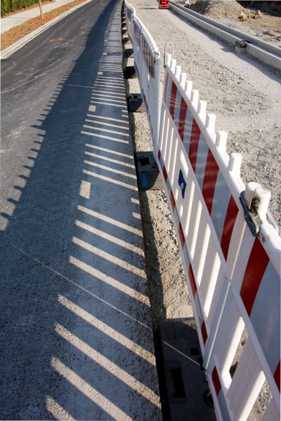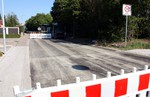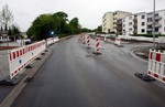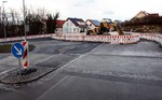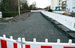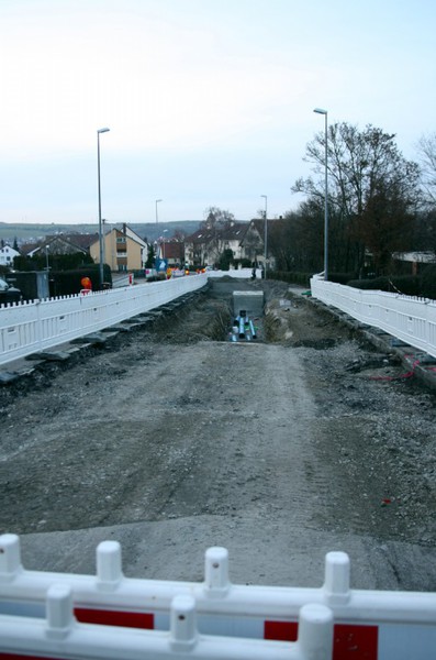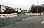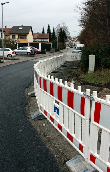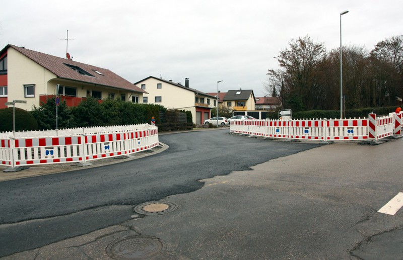 eingebaut worden. Der Vöhinger Weg indes ist wieder gesperrt. Im neuen Asphalt sieht man bereits die Einschnitte für eine Verkehrsinsel, welche hier noch platziert wird. Es wird seine Gründe haben,