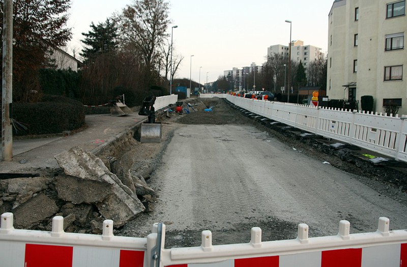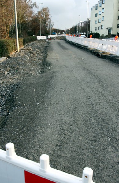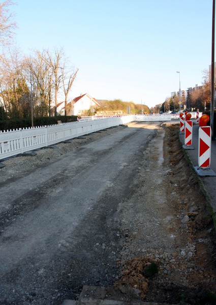 nicht mehr. Es werden hier lediglich die zweite Fahrbahnhälfte, ein weiterer Pflanzstreifen mit Bäumen und der neue Gehweg hergestellt.