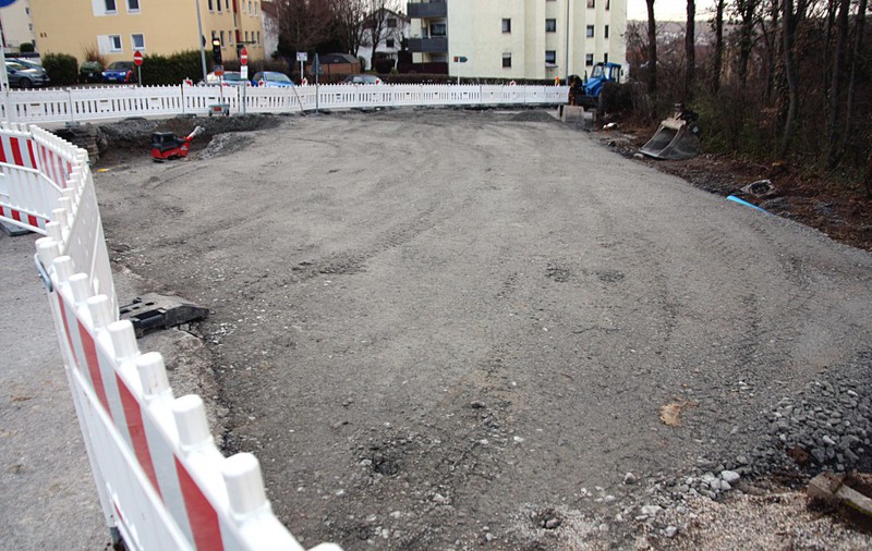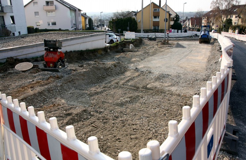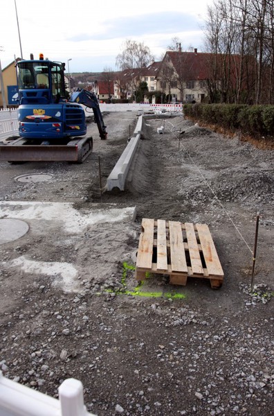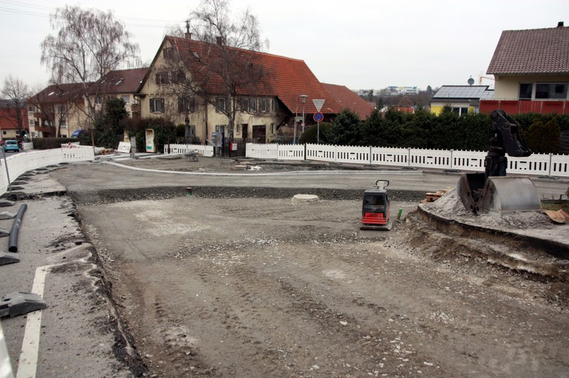 wurde begonnen die Baugräben wieder zuzuschütten. Man darf jetzt gespannt sein, sei sich die Arbeiten rund um den Kreisel weiterentwickeln. Die Ersatzparkplätze am Abzweig der Hermann-Essig-Straße