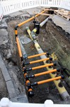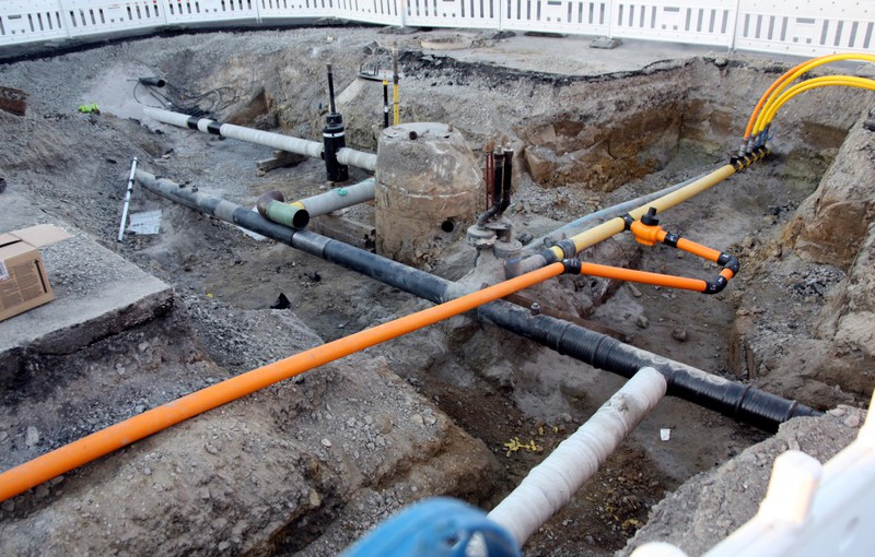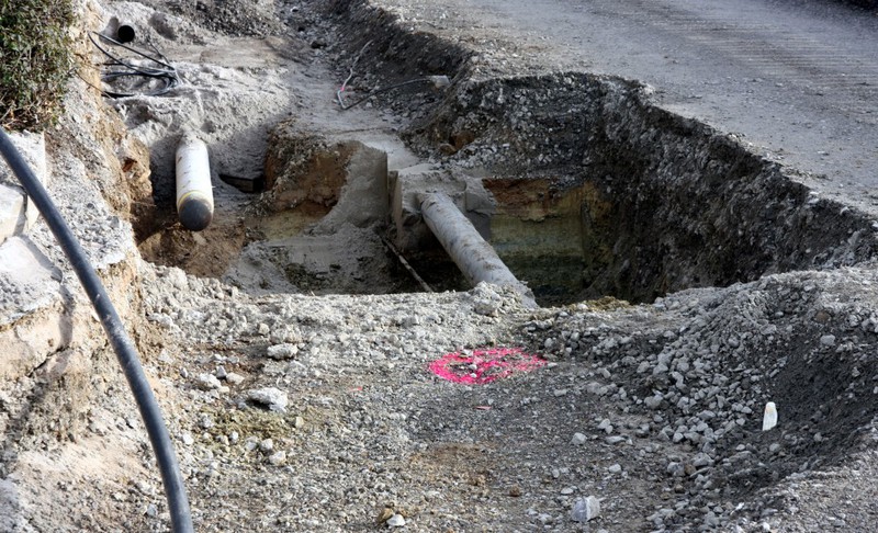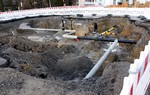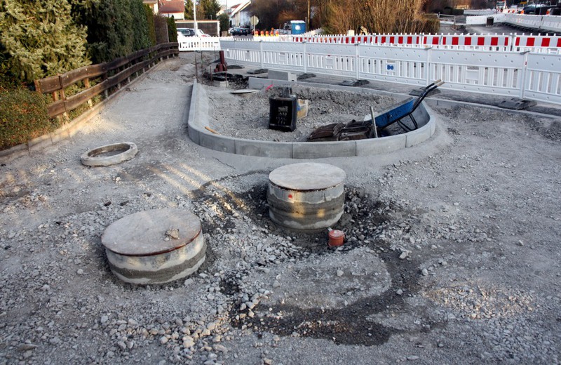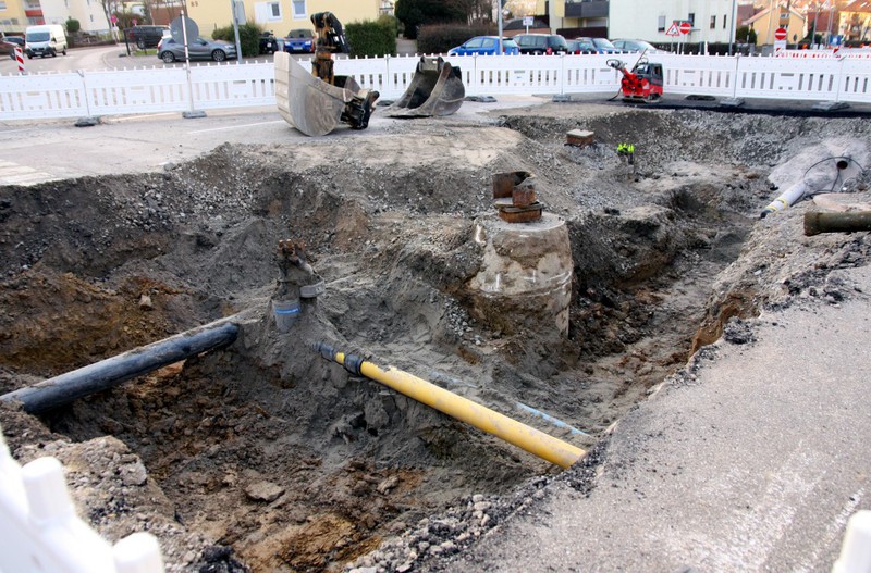 - Setzen eines Schachts und Verlegung der Wasserleitungen im Bereich des künftigen neuen Kreisels