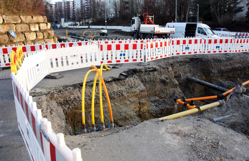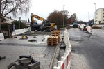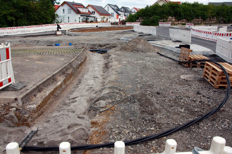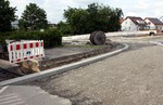 Der hauptsächlichen Arbeiten im Bauabschnitt finden am neuen Kreisel der Hermann-Essig-Straße statt. Hier wurde nochmals ein Graben gezogen und Leitungen verlegt.