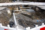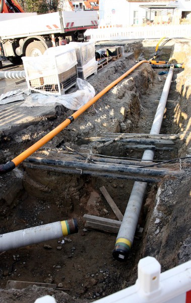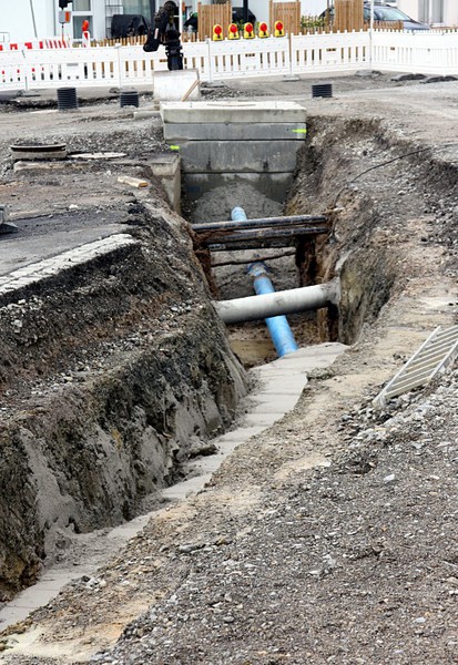 Leitungen noch im Bereich der künftigen Kreiselmitte, was künftig nicht mehr so sein soll.