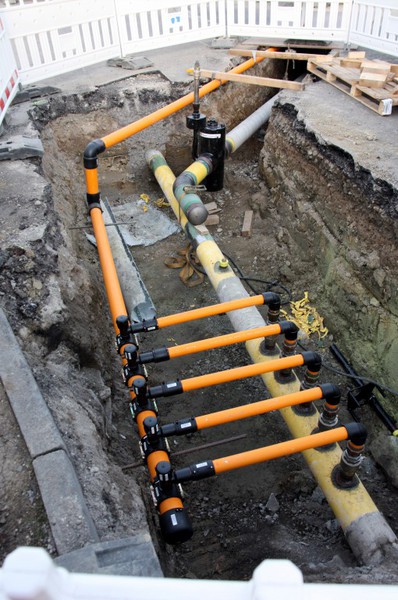 Bypässe. Teilweise wurde die neue Leitung bereits eingebaut.