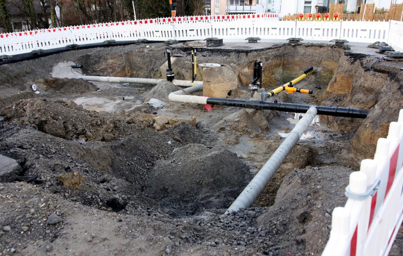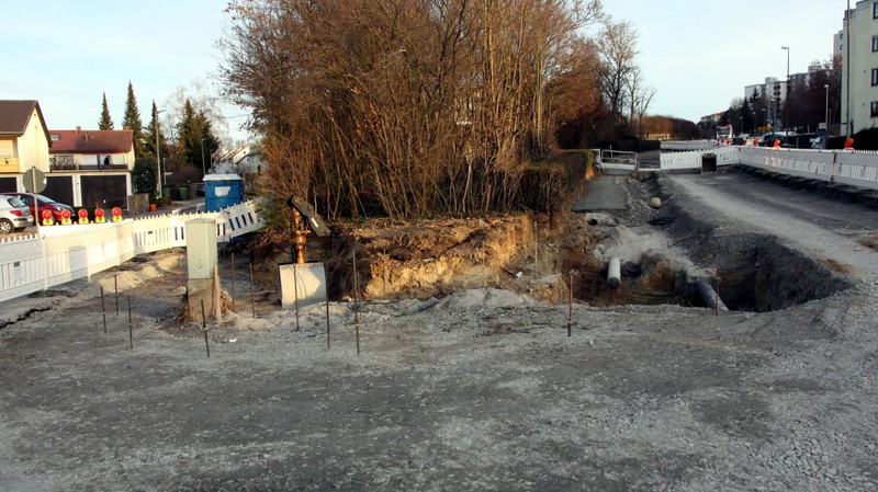 verlegt. Die Baugrube kann dann in der nächsten Woche vollends verschlossen werden.