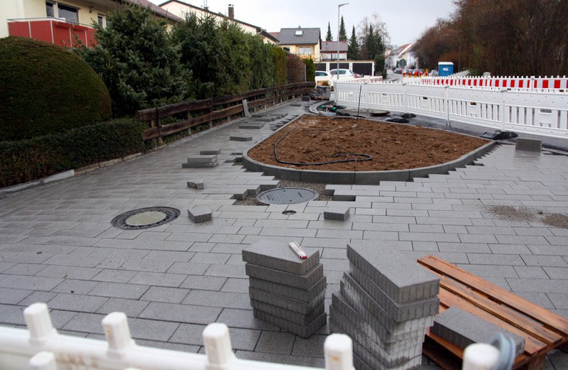 Mittelinsel des Kreises in der Stuttgarter Straße gebaut worden. Die Beete haben zudem noch eine neue Erdschicht bekommen. Am Brückentag ruhten die Arbeiten.