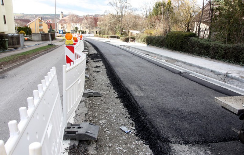 Im 6. Bauabschnitt wurde in Teilen auch schon die finale Asphaltdeckschicht eingebracht. Die Stuttgarter Straße bleibt aber weiterhin nur einseitig befahrbar. Zulässig