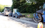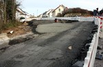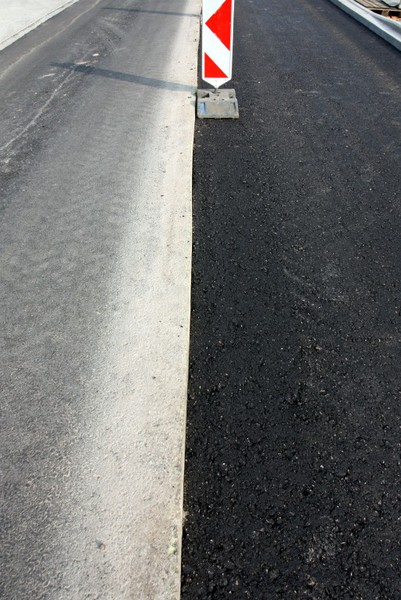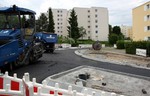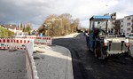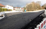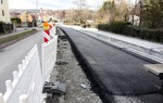 Am Kreisel gab es am Montag neuen Asphalt über den dann auch anschließend der Verkehr geführt wird. Der provisorische Asphalt auf dem bisherigen Umleitungsstück wurde