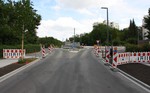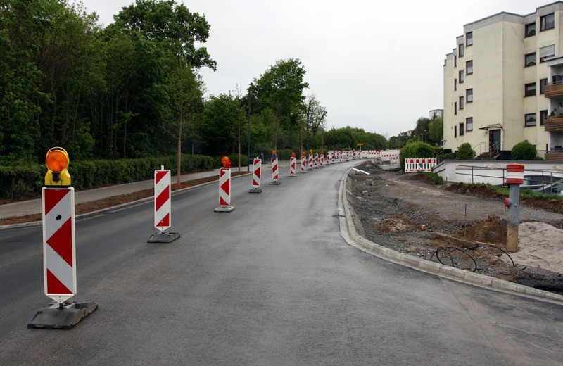 Bis auf die Gehwegbereiche um den neuen Kreisel sind die Bauarbeiten im 6. Bauabschnitt soweit abgeschlossen. Die finale Asphaltschicht ist eingebracht, so dass die