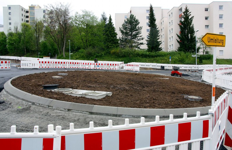 neuen Kreisel an der Hermann-Essig-Straße. Hier gibt es noch einiges zu tun.