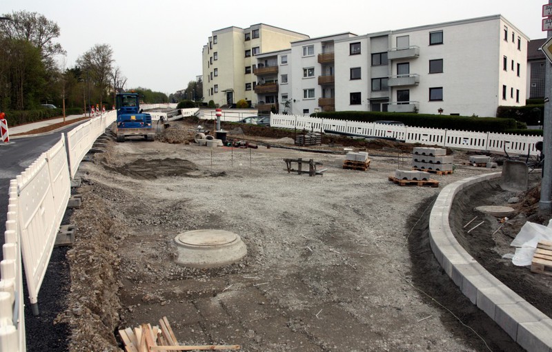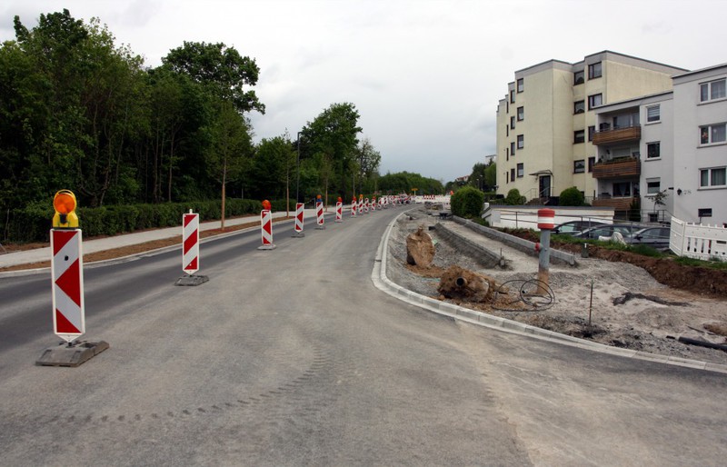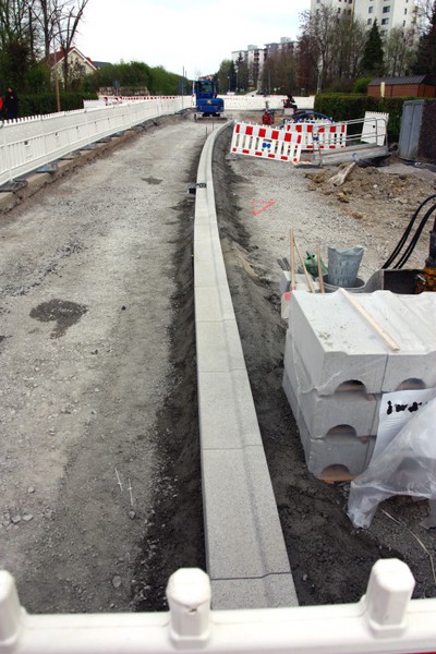 Mit sichtlichem Vorschritt sind in dieser Woche Randsteine gesetzt worden. Vom Abzweig in Posener Straße beginnend bis kurz vor den neuen Kreisel an der
