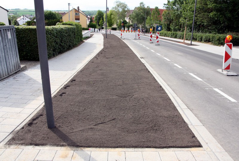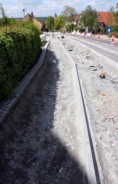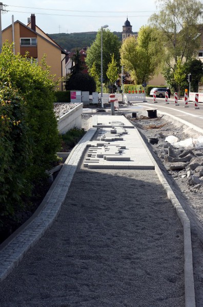 eingebracht werden. Hiervon ist dann auch der 6. Bauabschnitt betroffen. Die Vorbereitungen laufen deshalb auf Hochtouren. Die südliche Seite der Stuttgarter Straße wir sorgsam vom Alten befreit und