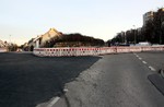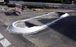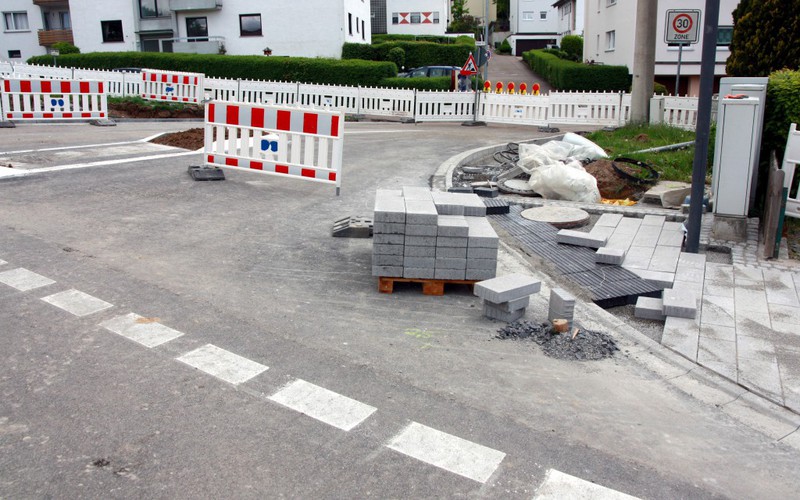 weshalb die Verkehrsinsel erst nach dem Asphaltieren gebaut wird.