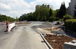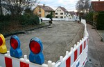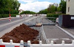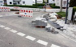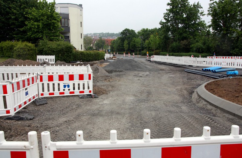 entsprechend vorbereitet. Zudem ist das Pflaster des Gehweges soweit wie möglich verlegt worden. Im Bereich des künftigen Kreisels wurde die Wasserleitung in Richtung der Hermann-Essig-Straße fertig