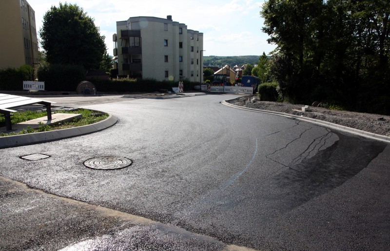 die Randsteine verlegt sind kann dann der finale Asphaltbelag kommen.