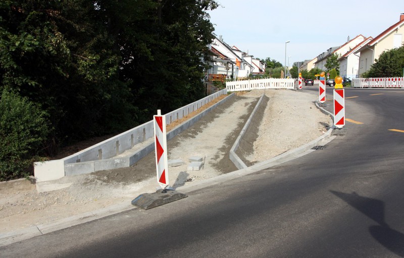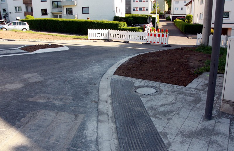 An der Zufahrt zur Hermann-Essig-Straße sind die Randsteine gesetzt worden. Damit schließt sich eine letzte Lücke bei den Randsteinen. Zudem ist die noch fehlende