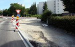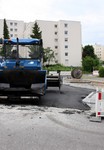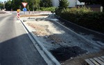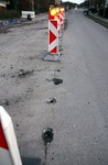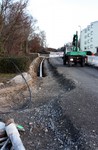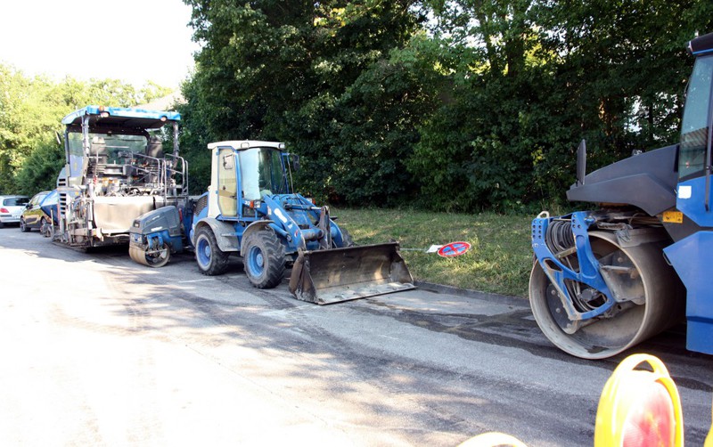 Die Baustelle ist auf die andere Straßenseite gewechselt. Dort ist bereits der alte Asphalt ausgebaut. Bis in einem Monat will man hier mit dem Neuaufbau der Fahrbahn und