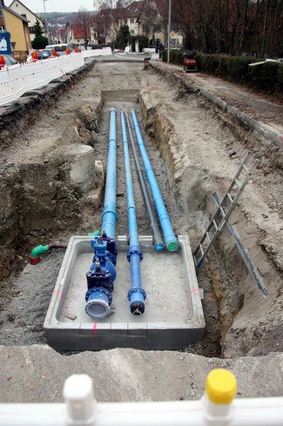 verlegt, d.h. die Hauptleitung der Hermann-Essig-Straße an die neuen Leitungen in der Stuttgarter Straße angeschlossen.