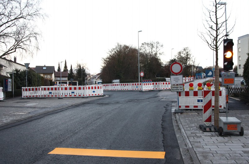 Nach der winterlichen Baustellenpause gingen die Arbeiten ab dieser Woche wieder weiter. Als erste Maßnahme wurde die angekündigte Ampelanlage aufgestellt. Im Verlauf der