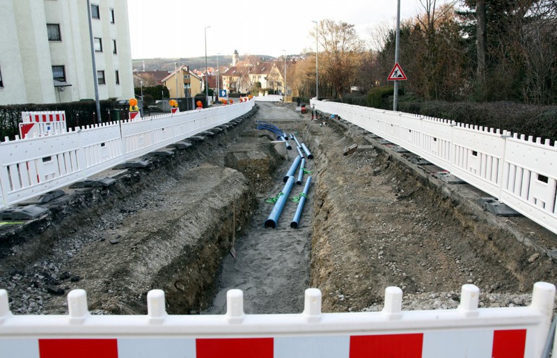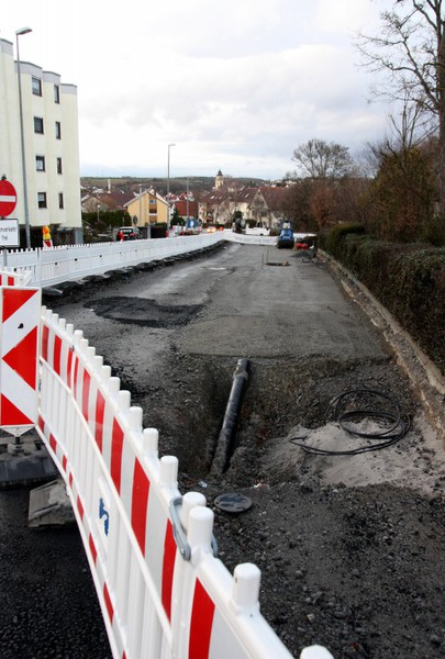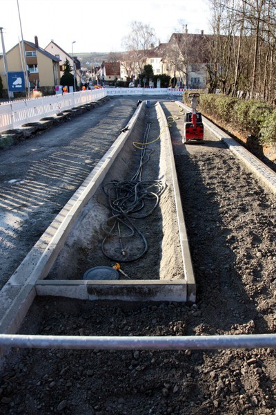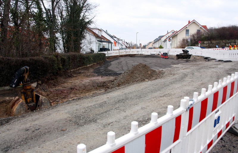 Ortsausgang. Auf ca. 1,2 km Länge werden Leitungen und Kanäle im Untergrund erneuert und danach die Straßen- und Gehwegflächen neu angelegt. Hinzu kommen die Sanierung des