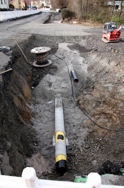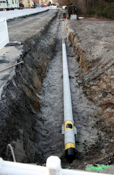 Im Graben aus der letzten Woche wurde eine Gasleitung verlegt. Was hier auffällt ist, dass die Leitung gar nicht so tief im Erdreich liegt. Das wird aber alles richtig so
