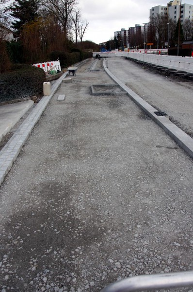 Stück an Asphalt eingebracht werden soll. Die Zeit bis dahin wird sicherlich ausreichen, um die Randsteine zu setzen, die Fahrbahn entsprechend vorzubereiten und auch schon Pflaster zu