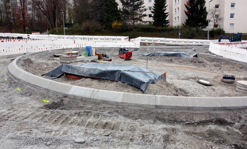 entfernt und begonnen, den finalen Unterbau einzubringen. Somit wird sich dann der Ring um den neuen Kreisel komplett schließen.