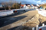 Arbeitsschwerpunkt im 6. Bauabschnitt sind weiterhin der neue Kreisel an der Hermann-Essig-Straße und die Gehwegbereiche auf der innerörtlichen Seite. Auf dem Kreisel "fließt" zwischenzeitlich die