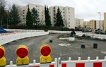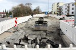 aus. Der Kreisel wurde indessen bereits mit Erde aufgefüllt. Die Zufahrt in den Vöhinger Weg und die Posener Straße bleiben bis auf weiters gesperrt.