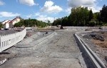 Pflasterleger anrücken können. Das ist auch notwendig, denn im Bereich des neuen Kreisels gibt es derzeit keinen durchgängigen Gehweg und man muss hier als Fußgänger auf die Straße