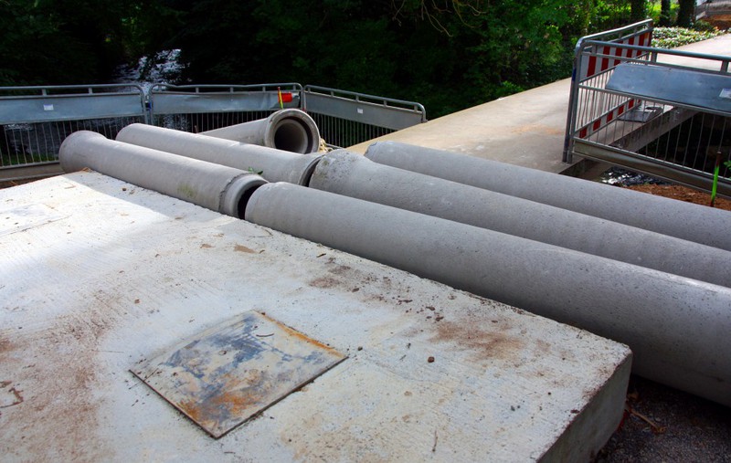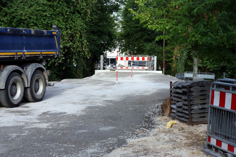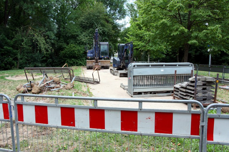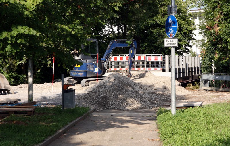 Die Fundamente für die Behelfsbrücke sind in Vorbereitung. Die Arbeiten am ehemaligen Boule-Platz kommen voran.