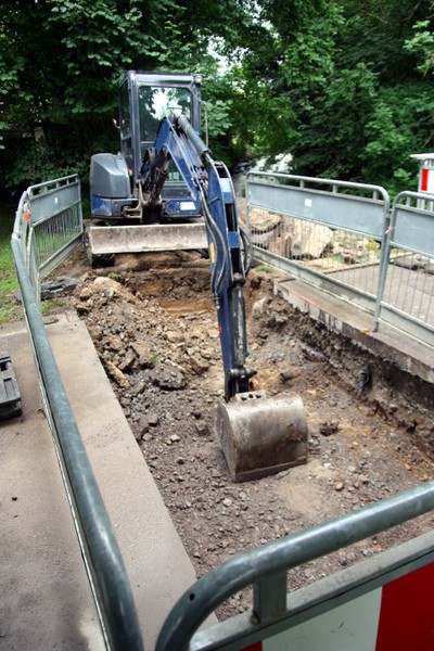 Die Fundamente für die Brücke sind fertig gegossen. Der Baustellenbereich hat sich in dieser Woche allerdings nicht wesentlich vergrößert.