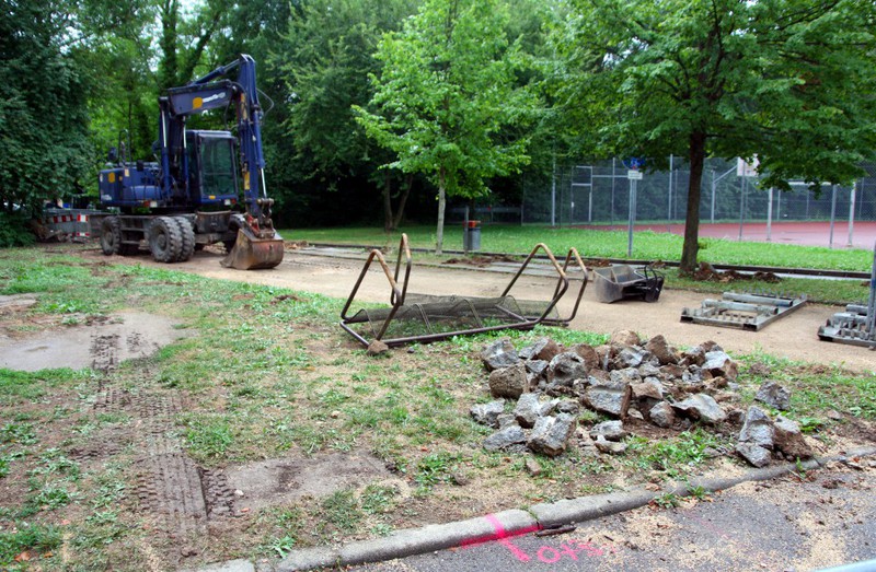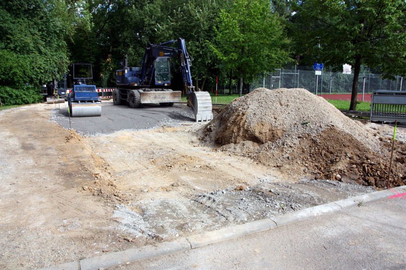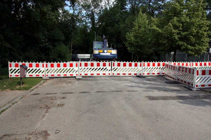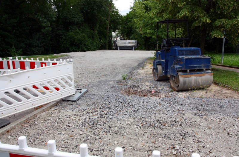 An den Ersatzparkplätzen im Mündungsbereich der Hermann-Essig-Straße hat sich noch was getan. Es gab Begrenzungszäune.