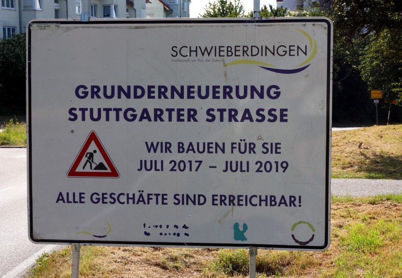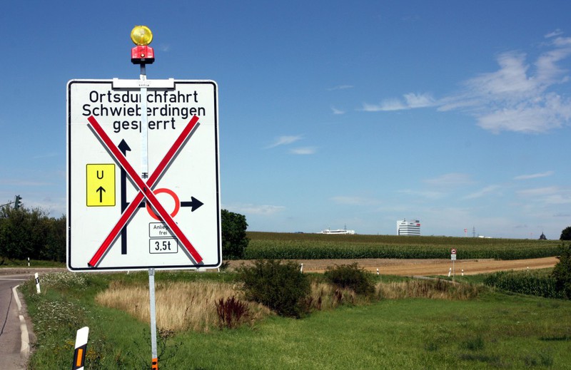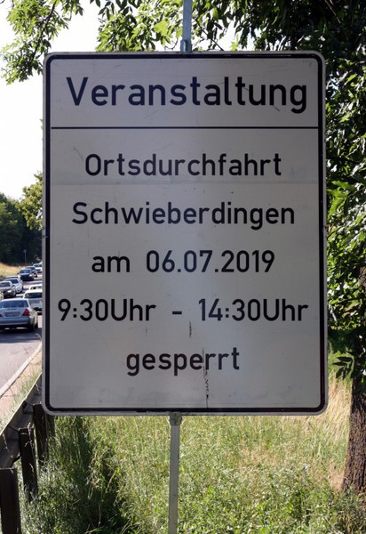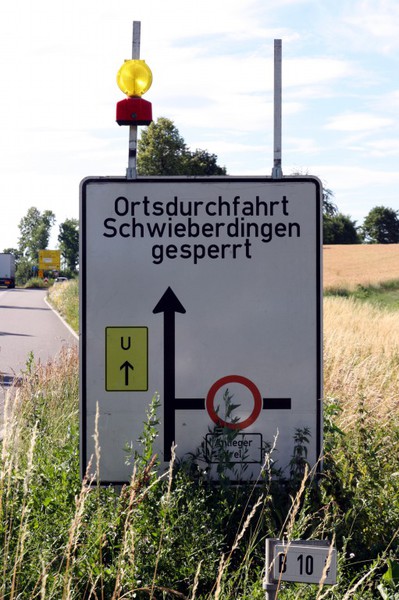 darauf hin, dass die Ortsdurchfahrt am 06.07. gesperrt ist. Die Schwieberdinger Ortsdurchfahrt ist doch schon seit 2 Jahren zu meiden, was bereits durch die bestehende Beschilderung zum Ausdruck