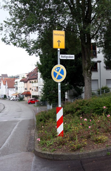 Die Esslinger Höhe und Im Seelach sind komplett mit Parkverbotsschildern ausgestattet. Über beide Straßen wird die Umleitung geführt, so lange auf der Stuttgarter Straße