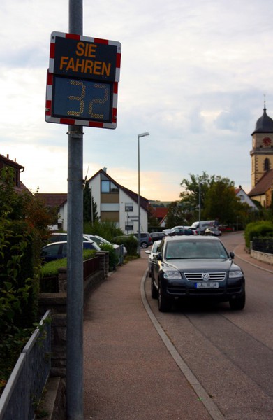 Am letzten Wochenende wurden Kinder beobachtet, wie sie mit ihren Fahrrädern den Schulberg mit rasanter Geschwindigkeit heruntergefahren sind, um die damals dort aufgehängte Geschwindigkeitsmesstafel auszulösen. Nach Rückmeldung an die Verwaltung wurde die Geschwindigkeitstafel jetzt in die Gartenstraße umgehängt (Zumindest wäre das eine logische Erklärung). Allerdings misst die Tafel falsch und zeigt Geschwindigkeiten ab 30 km/h nicht in roten Ziffern an. Auch dies wird der Verwaltung zurückgemeldet werden.