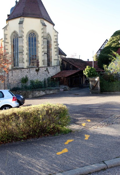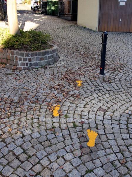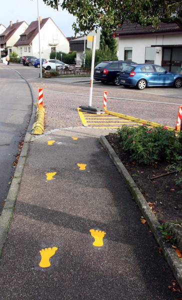 Des Weiteren gibt es an der Einfahrt in der Gartenstraße in Richtung Kirchplatz nun eine richtige "Nase" mit Fußspuren für die Kleinen.
