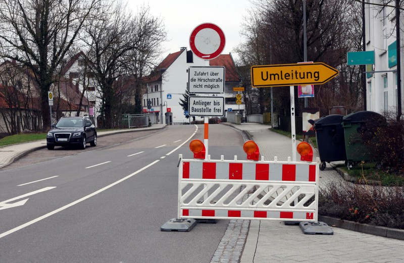 ist ebenso die Hirschstraße gesperrt. Das Sackgassenschild an der Hirschstraße war sogar ein Tag vor der tatsächlichen Sperrung bereits aufgestellt. Falls sich alle Autofahrer an die Beschilderung