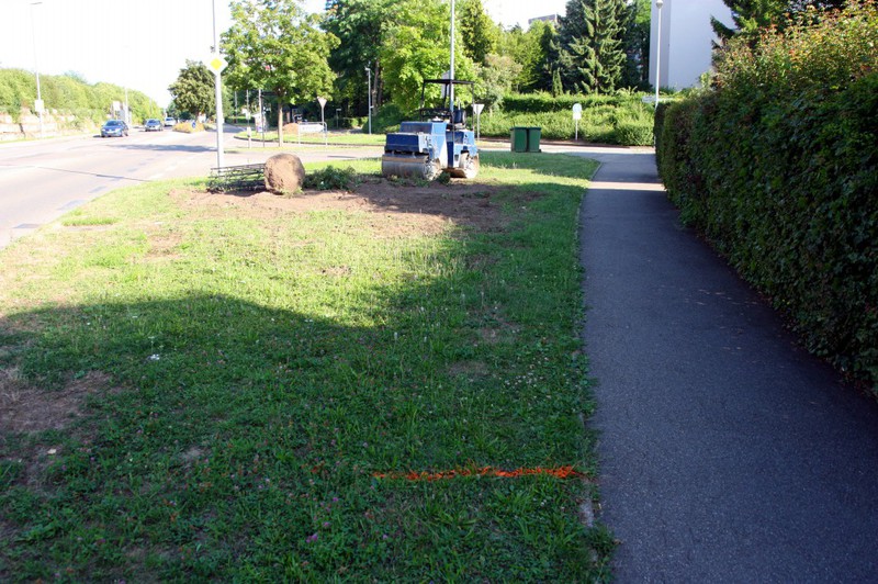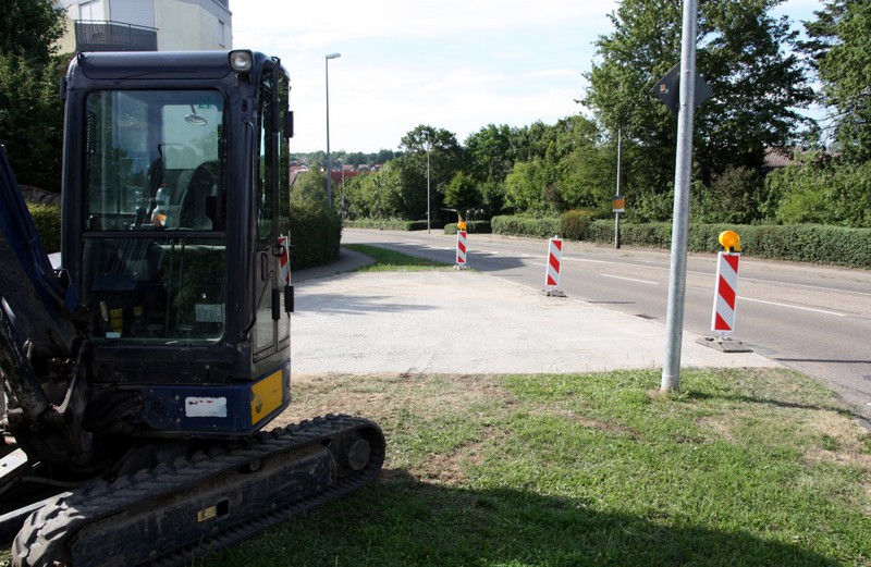 Die Umleitungstrecke führt nun doch gegen alle guten Argumente direkt an der KiTa Herrenwiesenweg vorbei. In dieser Woche wurden zur Einrichtung der Umleitungsstrecke Bäume gefällt und der Boule-Platz zurückgebaut. Zum Verlauf der Umleitungsstrecke gibt es keinen Beschluss des Gemeinderats. Die Streckenführung erfolgt durch die Vorgabe der Gemeindeverwaltung und des beauftragten Ingenieurbüros.