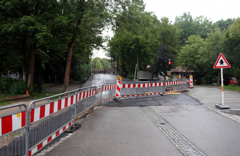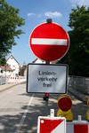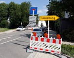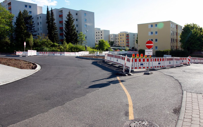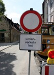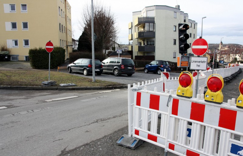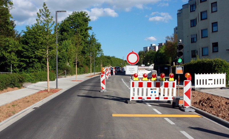 Anlieger und Busse in beiden Richtungen befahrbar. Die offizielle Umleitung geht weiterhin über die Hermann-Essig Straße. Die Umleitungsbeschilderung ist mal wieder gewohnt sparsam ausgefallen (und