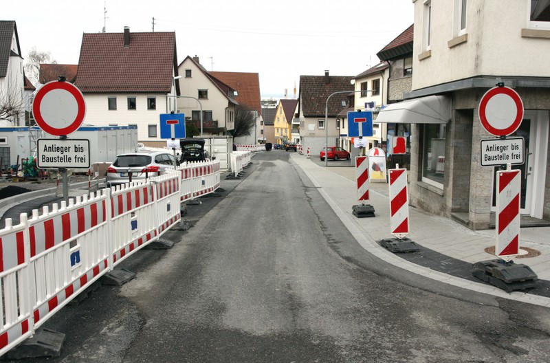 Stuttgarter Straße ist bereits asphaltmäßig fertig. Es sind noch knapp zwei Wochen bis zu Schapfenfest, wo dann die Einweihung der sanierten Ortsdurchfahrt stattfinden soll. Bis dorthin gibt es noch