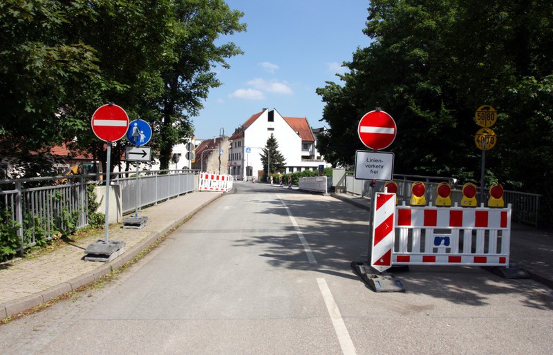 über die Hermann-Essig-Straße und der Ersatzbrücke zwischen der Bahnhofstraße und dem Herrenwiesenweg sind ausgeschildert. Es ist gut, dass die Beschilderung nun von Anfang an besser auf die