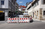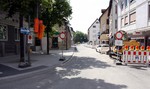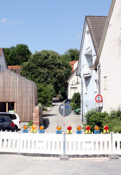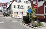 nicht mehr möglich. Ebenso wurde von Seiten der Gartenstraße die Einfahrt in Richtung Kirchplatz eingeengt. Ab nächster Woche wird dann noch die Bahnhofstraßen-Kreuzung gesperrt, was die Einfahrt von