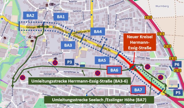 Hermann-Essig-Straße nicht mehr als Umleitungsstrecke. Lediglich der Seelach und die Esslinger Höhe agieren noch als Umleitung, wenn auch nur noch von kurzer Dauer. Das letzte Teilstück der