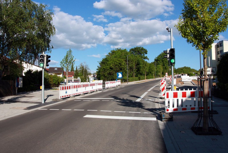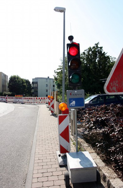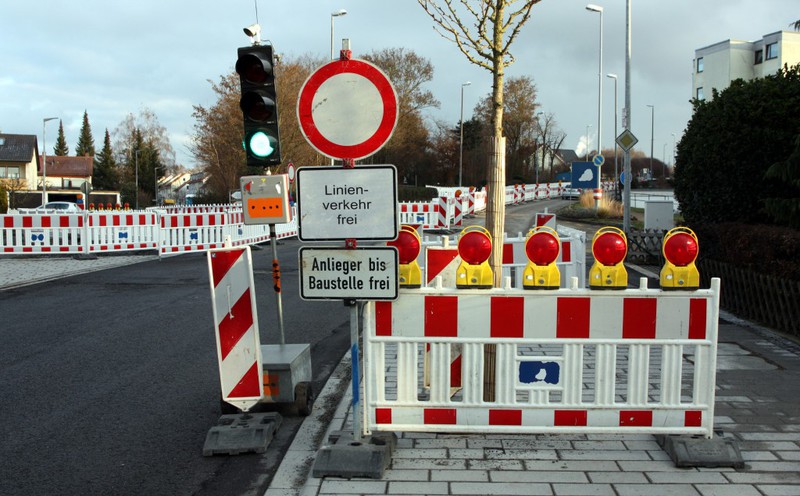 Nach der Wiederaufnahme der Bauarbeiten in Bauabschnitt 6 wurde die Beschilderung angepasst. An der Stuttgarter Straße wurde eine Ampelanlage aufgestellt. In den