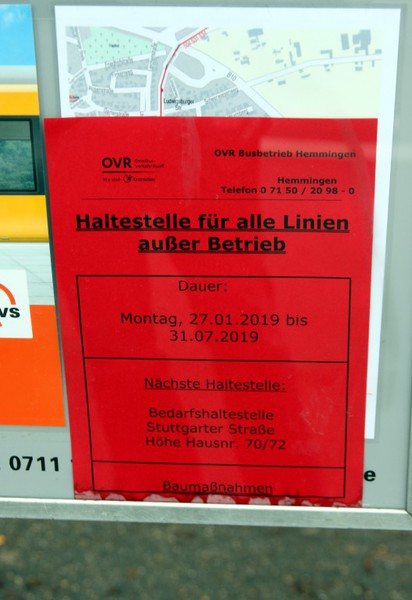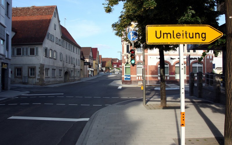 Die Umleitungsbeschilderung ist stark ausbaufähig. Man hat viel Geld in die Hand genommen und eine leistungsstarke Firma für die Beschilderung ausgewählt und dann gibt es nicht mal innerorts Umleitungsschilder? Woran liegt das? So suchen sich die Leute dann ihre eigenen Umleitungsstrecken, was so sicherlich nicht beabsichtigt ist. Zudem fahren viele Fahrzeuge durch den Baustellenbereich in der Stuttgarter Straße, obwohl dieser per Beschilderung eindeutig gesperrt ist.