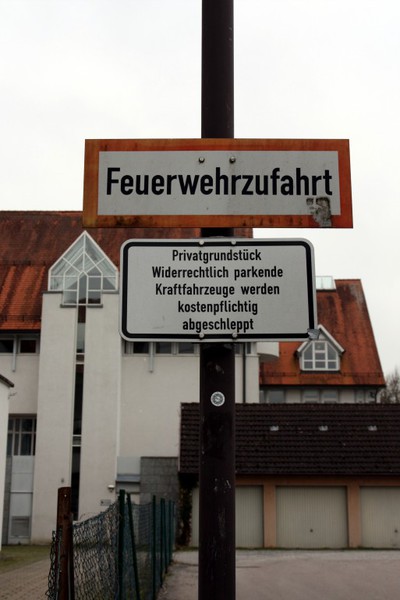 Nebenbei sei noch angemerkt, dass das unten gezeigte Schild nicht zur Benutzung des Mitarbeiterparkplatzes beim Rathaus einlädt. Dieser Parkplatz ist neuerdings wochentags von 16 - 7 Uhr für die öffentliche Nutzung freigegeben. Warum hängt dieses Schild noch da? Und wie kann ein Gemeindeparkplatz ein Privatgrundstück sein?