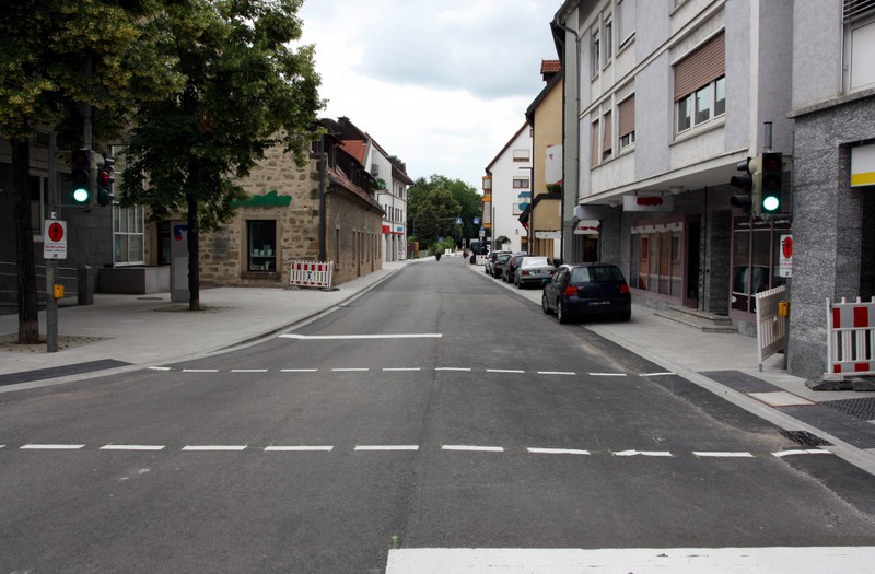 Anlieger der Stuttgarter Straße: Stuttgarter Straße von West nach Ost mit Ampelschaltung (Während Bauabschnitt 6) |