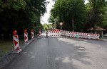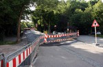 Baustellenbereich einfahren können von West nach Ost ausschließlich Anlieger. Der Linienbusverkehr darf die Baustelle von beiden Seiten passieren. Alle anderen Fahrzeuge haben die Umleitungsstrecke
