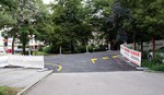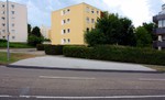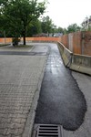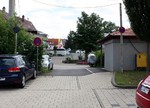 Die Zufahrt zur Tiefgarage der Wohnanlage Kaiserstein erfolgt jetzt über den alten Gehweg (und künftigen Radweg) vom Kreisel an der Stettiner Straße beginnend.